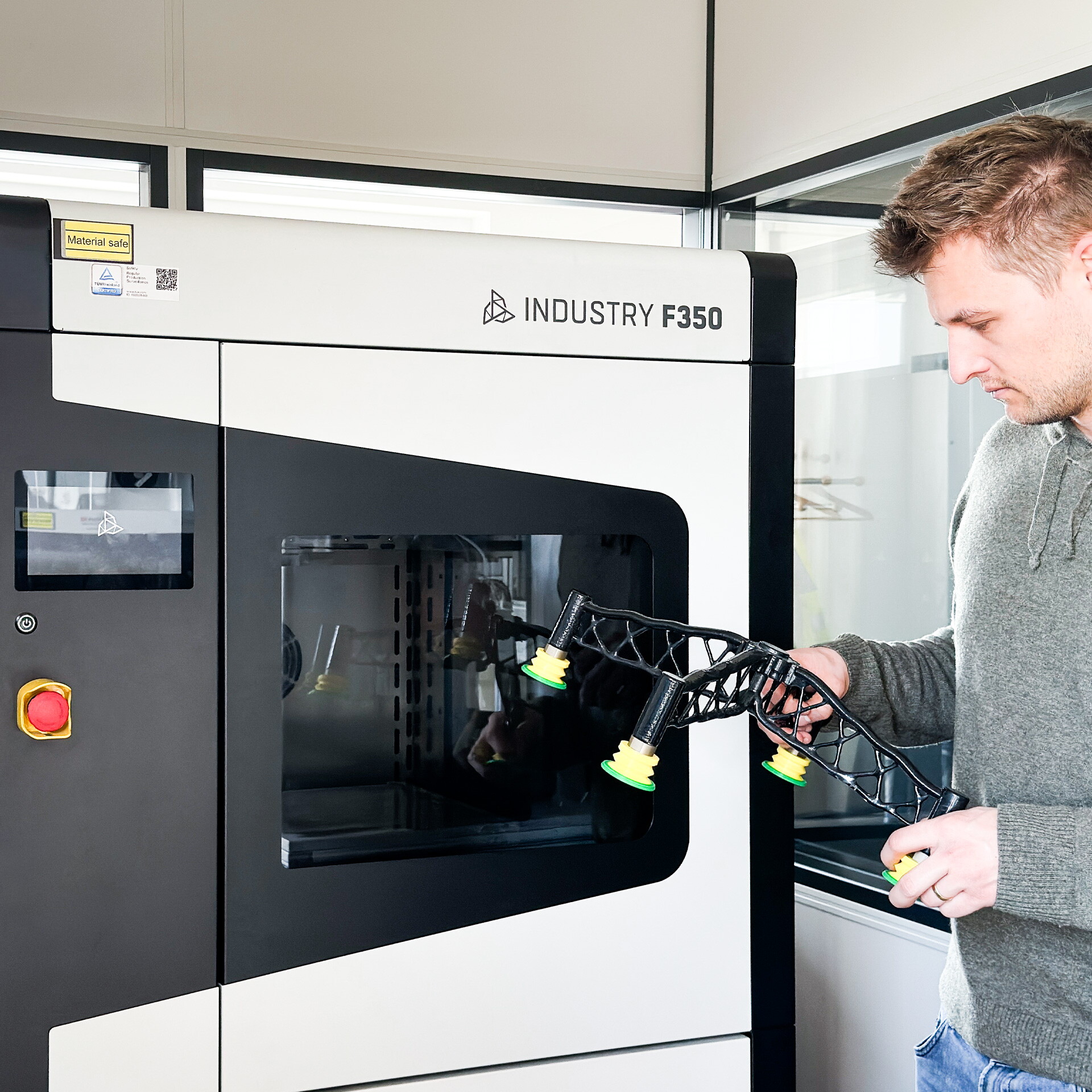 Der 3D-Druck im Greifer- und Vorrichtungsbau ermöglicht die schnelle und kostengünstige Fertigung komplexer Geometrien, wie beispielsweise bionischer Greifer für maximale Stabilität. Er bietet hohe Flexibilität bei der Anpassung an individuelle Anforderungen und vereint Festigkeit mit Leichtbau.