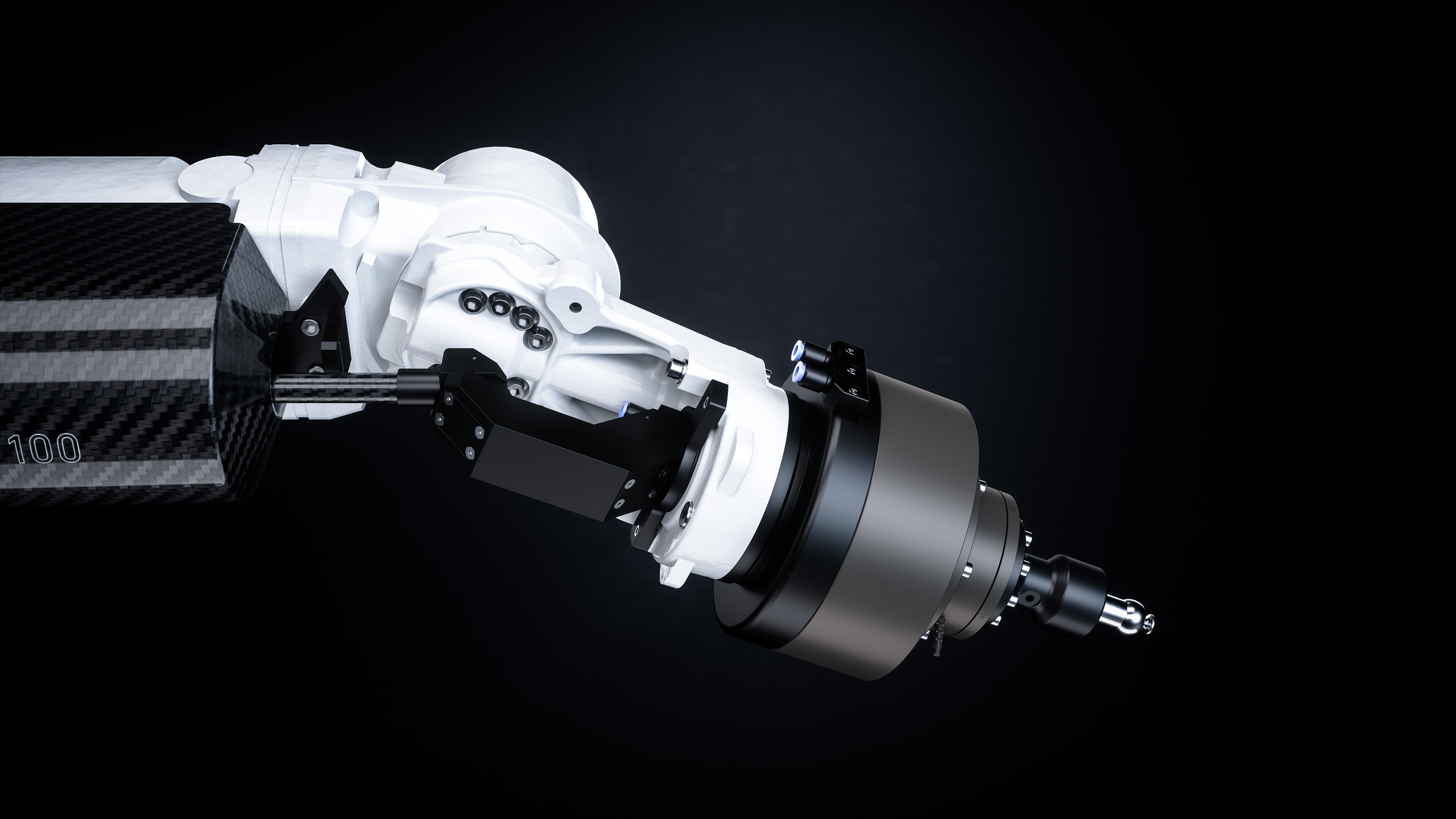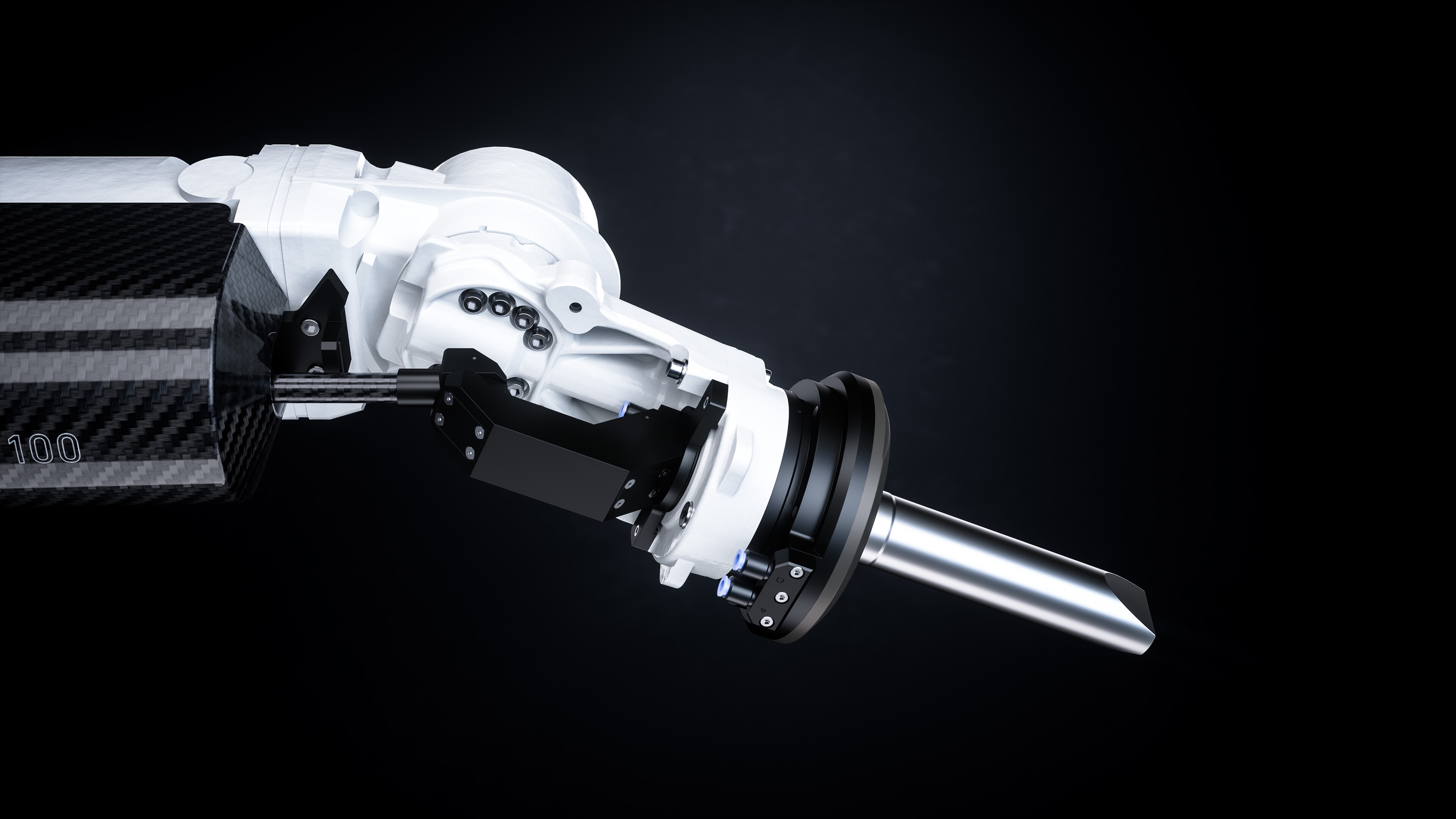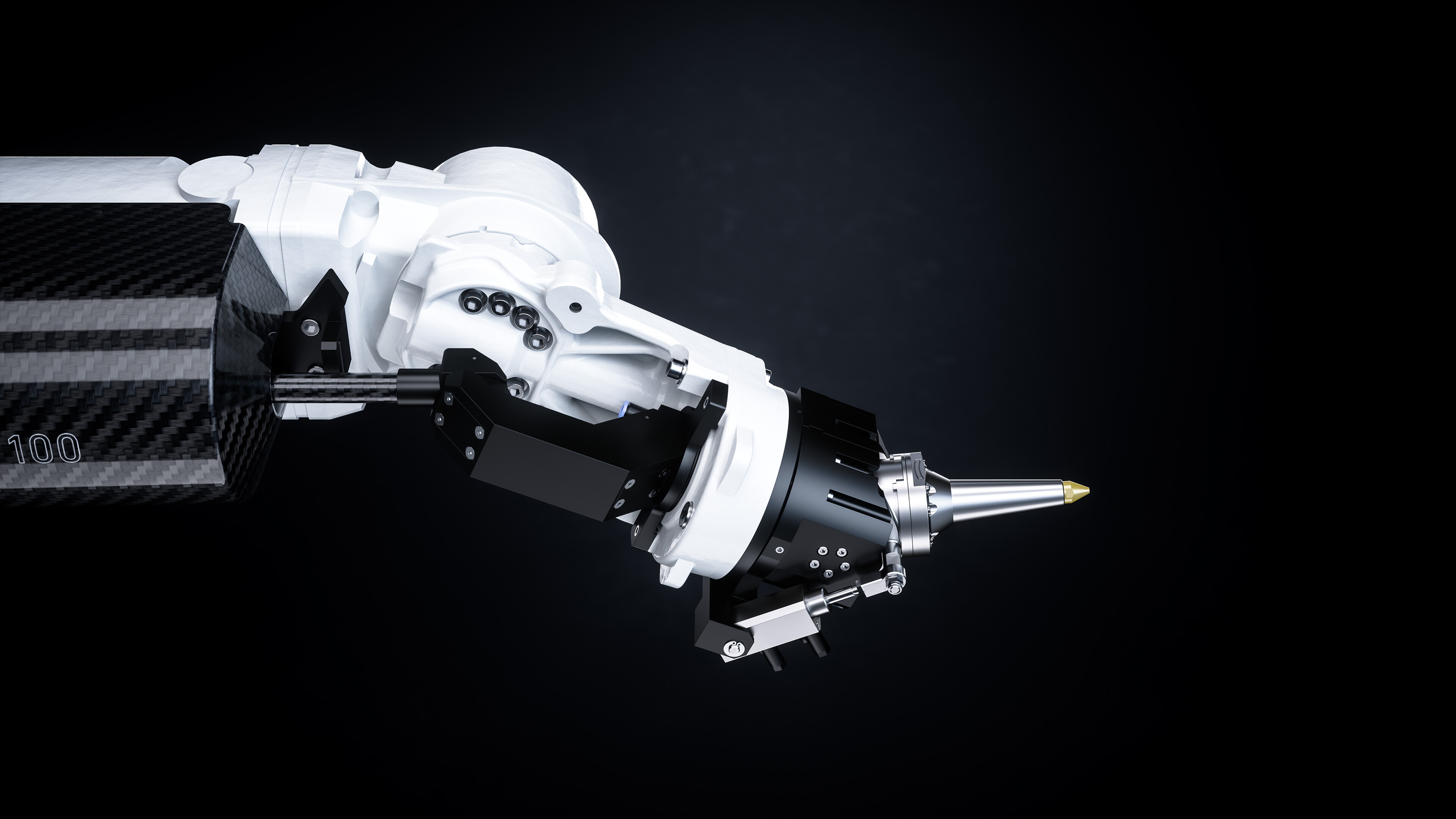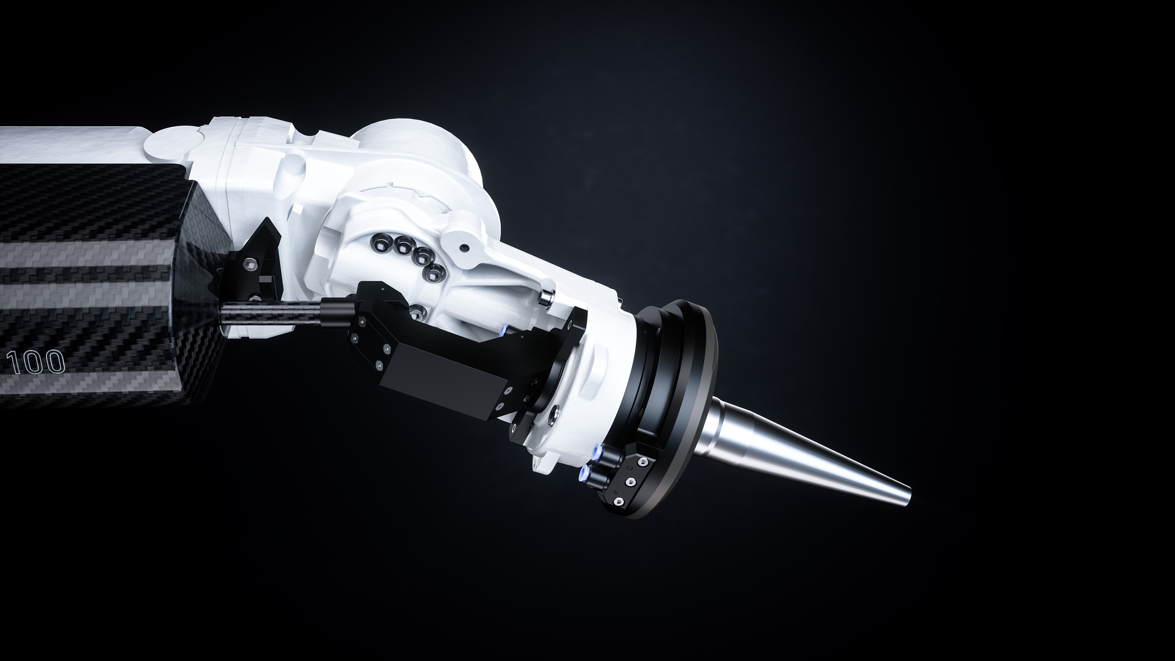 The extremely lightweight housing made of carbon integrates the CO₂ laser and the RF power supply. The robot's low weight and high stability allow it to conduct laser cutting jobs precisely and flexibly