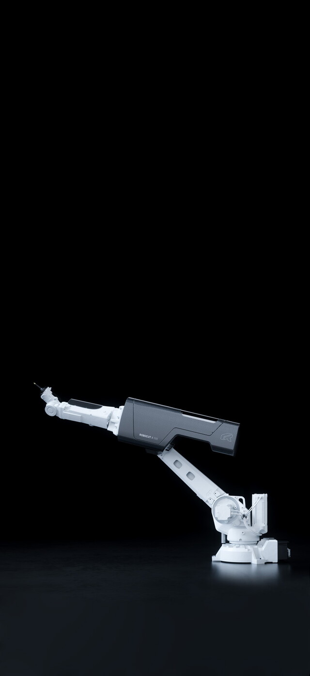 Laser powers of 100 - 300 W and various nozzle and scanner variants are available to adapt to specific requirements. The tried-and-true technology of embedding the laser in a housing as an integral component of the kinematics is also provided here. An ultra-light housing made of carbon is the connecting link between axis 2 and 4 and contains the laser source. A large working area, speed, variation possibilities and very high precision characterise the laser cutting robot and make it an absolute high-tech machine.
